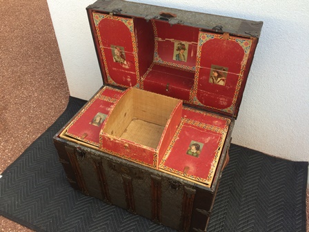 I brought Mark a project I had sitting in my garage for close to 15 years. It was an old travel trunk that my father had purchased at a Flea Market in San Francisco. I remember it being in our house all my life. By the time it found Mark it was not in the finest condition and needed more love than I could provide. I took the trunk to Mark’s shop and we discussed what my expectation were and what kind of time it would take to deliver on them. I asked him to attempt to preserve as much of the original trunk as possible and to leave it’s reflection of age and wear… to me that was integral to it’s identity. (All too often a restorer will make the item appear “new” and that is what I did not want.) Mark understood what I was asking for and moved ahead enthusiastically. In the end, while I think the project took a bit longer than he anticipated, the trunk is absolutely beautiful. It has been brought back to a well preserved representation of an antique it’s age. It is perfect. I always fear handing off projects I have spent considerable time thinking about to others. In this case the finished result exceeded my expectations. Cheers and Thanks, Mark. -Mike 10/10