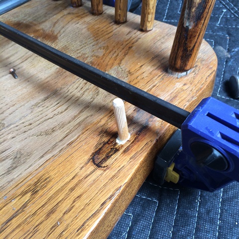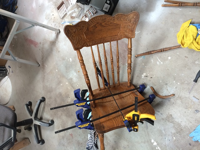 Recently a customer brought in a dining chair that was part of a set. The seat had split in two and a few of the stretchers and a back support had come loose. A replacement would be very difficult if not impossible to find so they brought it to us. We were able to glue it back together and save the chair from the fire wood pile and save a families dining room set.
