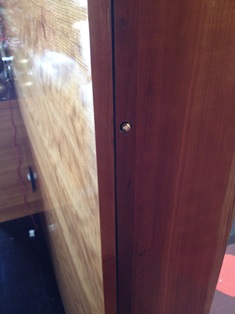 Furniture Medic by Bespoke Restoration was asked by an interior architect to aid one of his clients that needed repairs throughout their house. They had beautiful custom built cherry veneer cabinets throughout their home that needed image enhancement on the cabinet doors and trim millwork. Mark did a full day of precision infill and color blending repairs to the cherry wood veneer to cover over the wear and tear (dents, nicks and scratches) and make them look like new again. During the image enhancement process the customer also had mark repair three areas of gouges to the dark cherry hardwood floors.