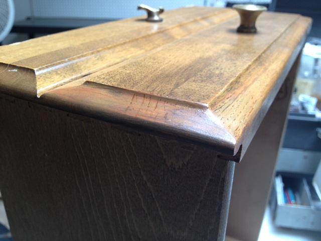 Ms. Honeycutt-“My boys were moving my mom’s 60 year old pristine dresser. The drawers flew out around a corner and two drawers smashed on the road. The corners were GONE and jagged where they had crashed along the pavement and both drawers had a split all the way along the front. Mark at the Furniture Medic rebuilt the corners, fixed the splits and you cannot tell that they were damaged at all. My mother is blind, and while I can see that the drawers are fixed, she only feels the drawers, and they are smooth as when she bought the dresser. He matched the wood grain, noticed that the corners of the other drawers were a bit darker so made the corners darker. I couldn’t be happier with the end product.”