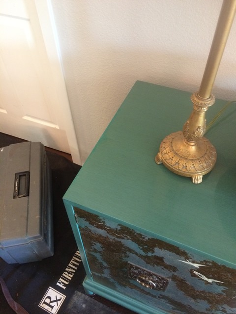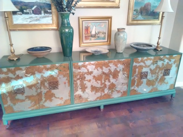 Our customer had a beautiful piece designed by Renzo Rutili and manufactured by Johnson Furniture from the 1950’s. He had just moved here from Pennsylvania and was devastated when the piece started to show signs of climate change. The credenza had been in his family for decades and had recently been appraised at $15-18K. It has a special hand painted finish that is very difficult to match. He understood our difficult task, but hated to see it deteriorate any further and would be happy with whatever we could do.