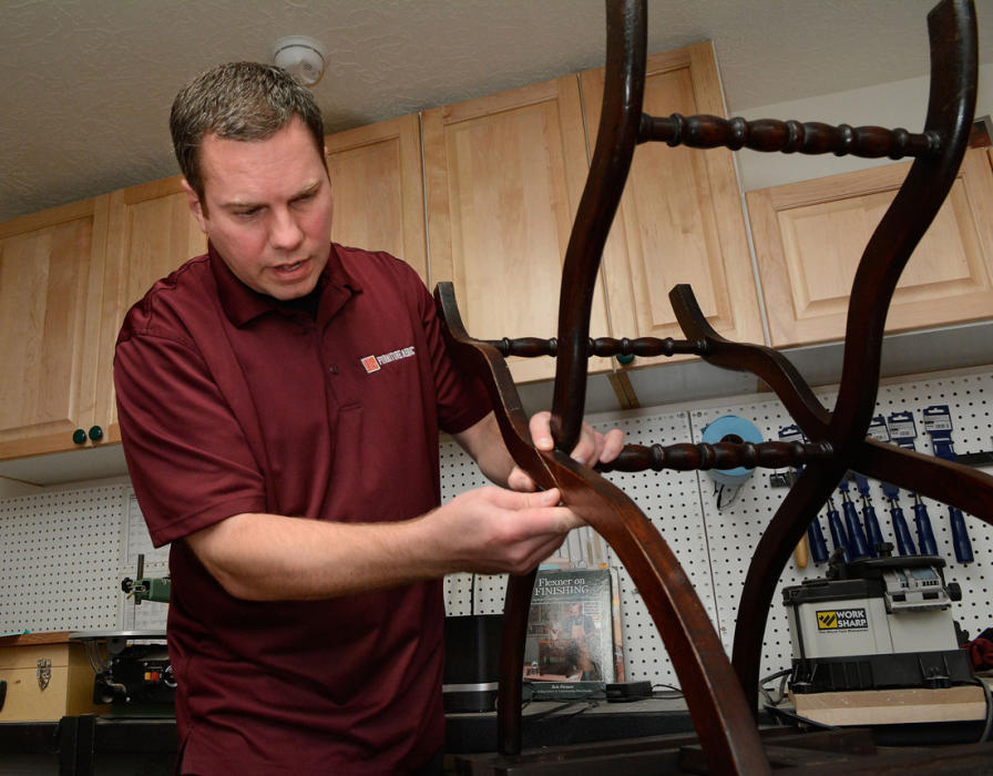 - jt120315j/a sec/jim thompson/Mark Ryan with Furniture Medic is a furniture restorer looks over a table leg that he needs to repair. Thursday, Dec. 03, 2015.(Jim Thompson/Albuquerque Journal.)