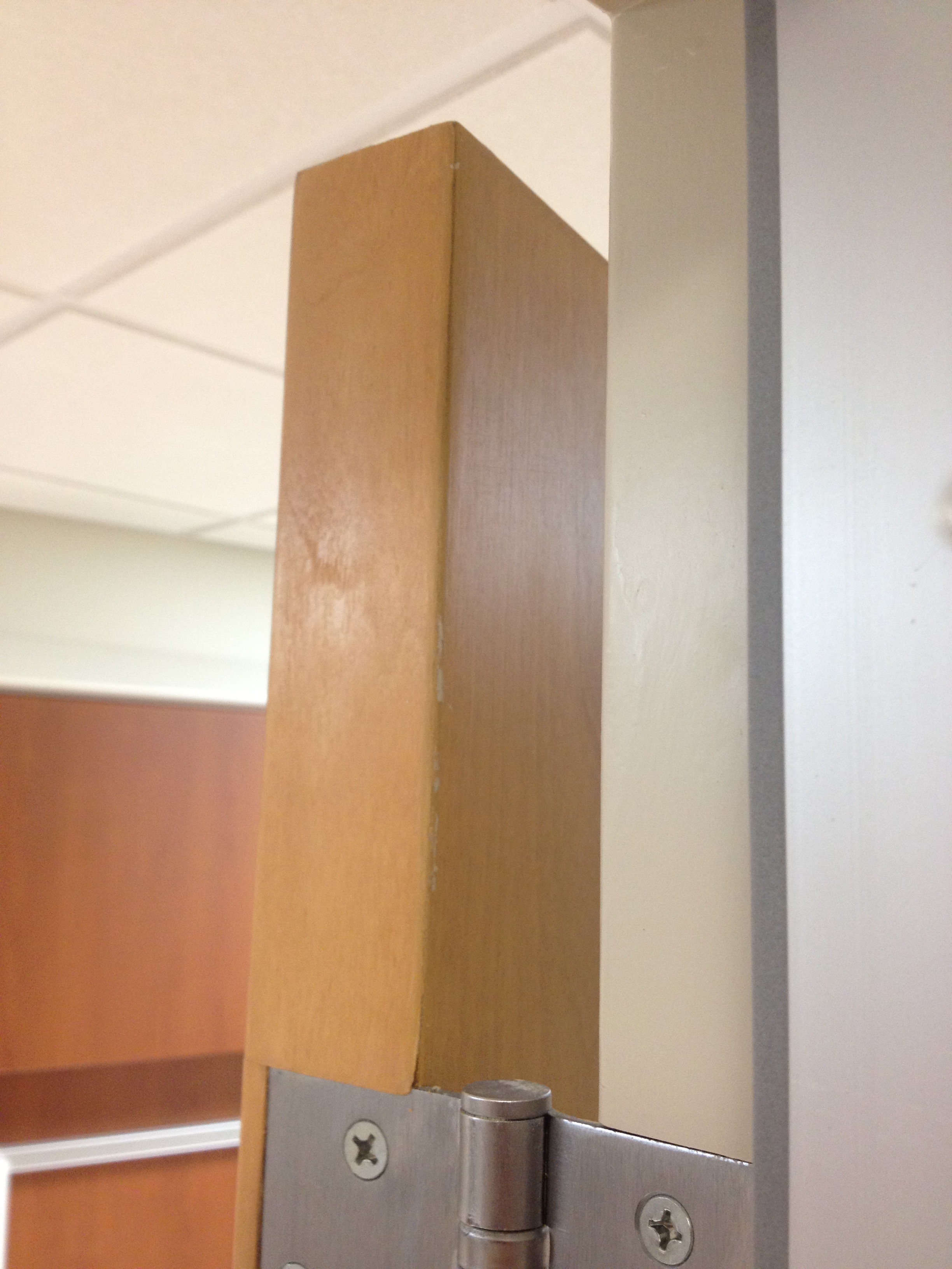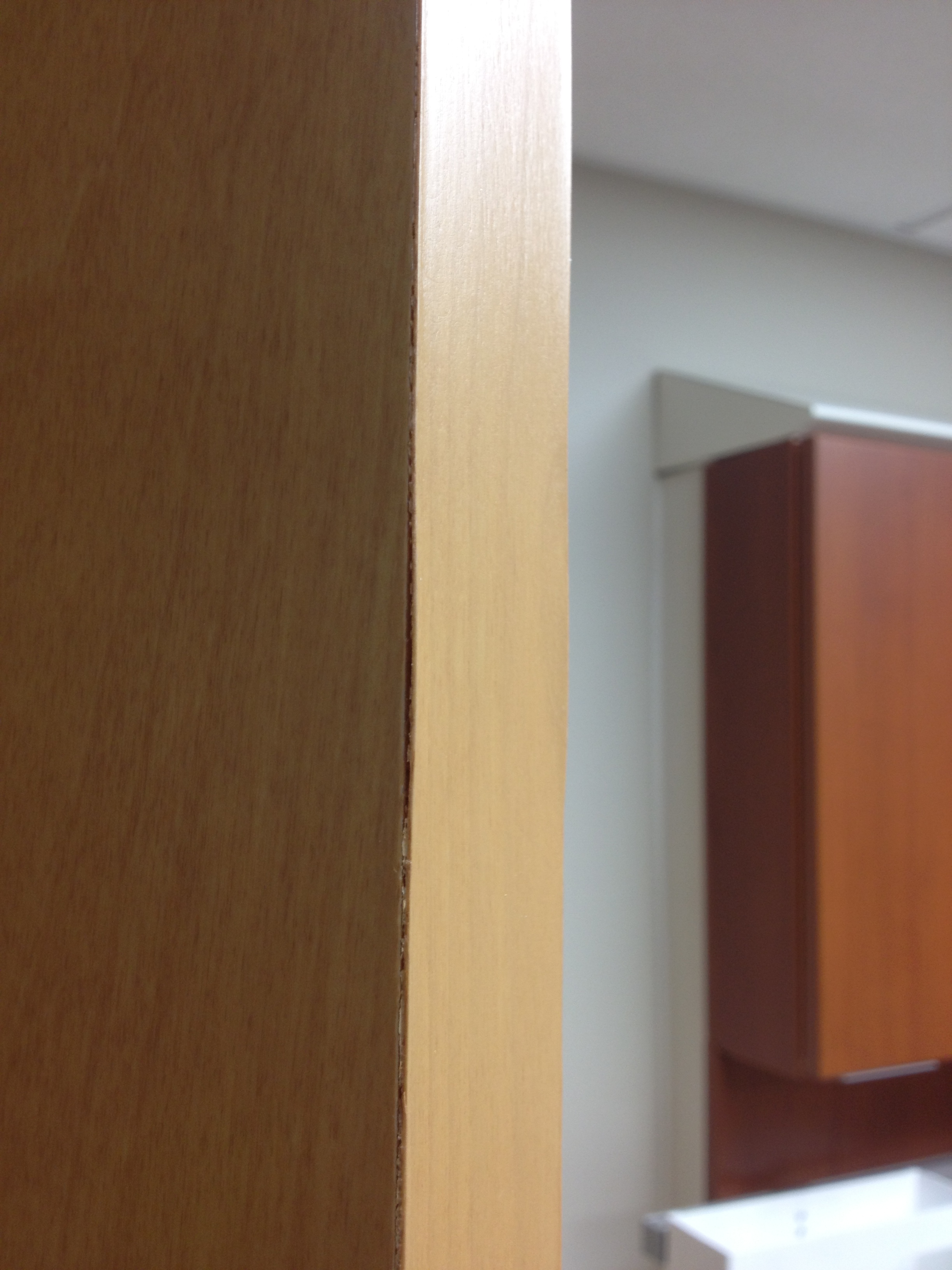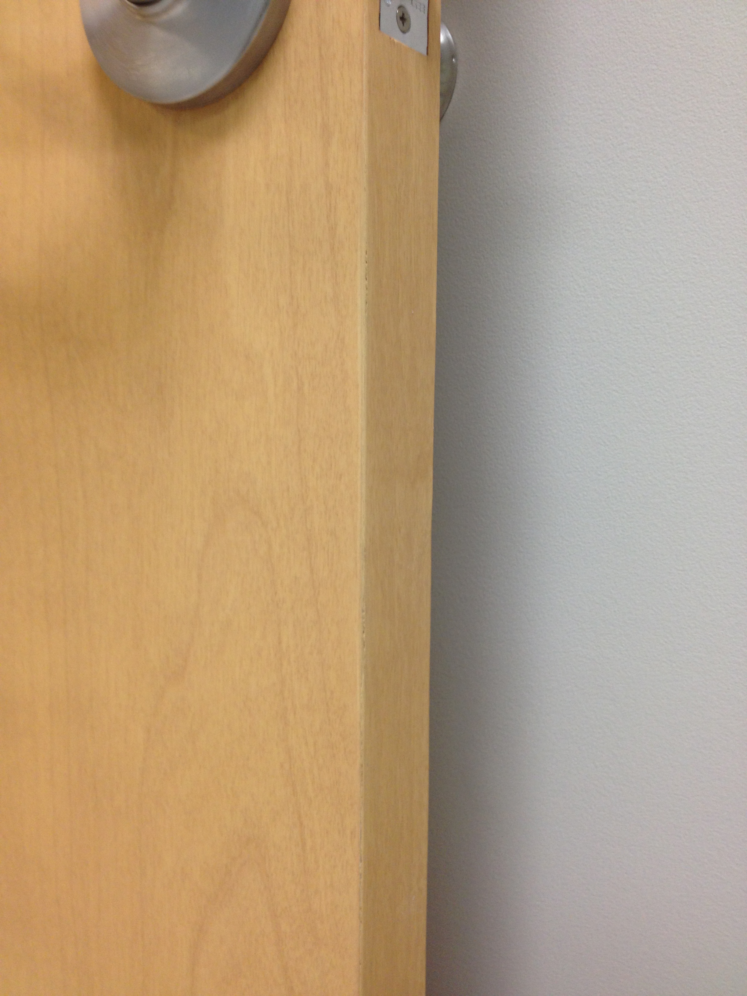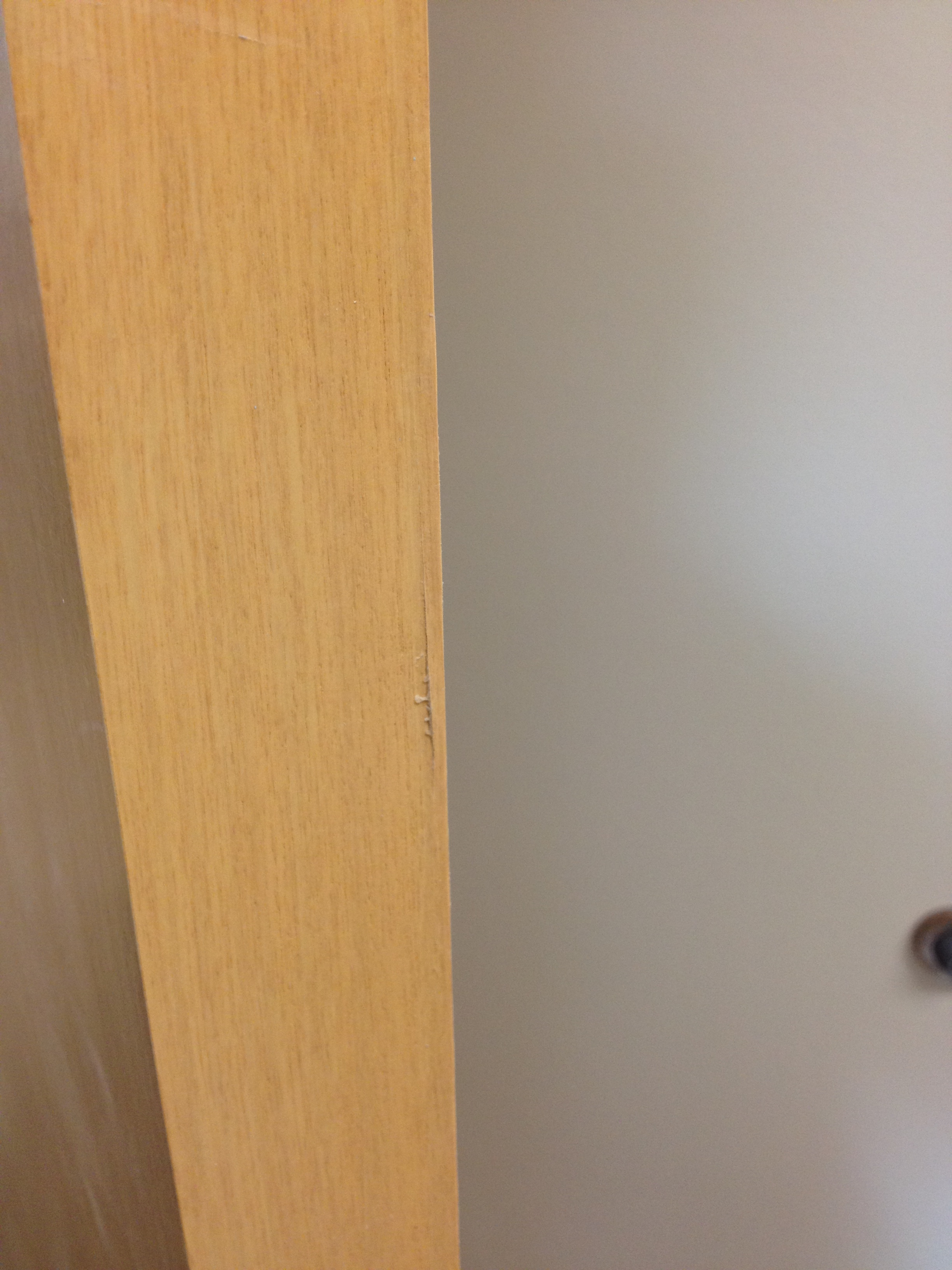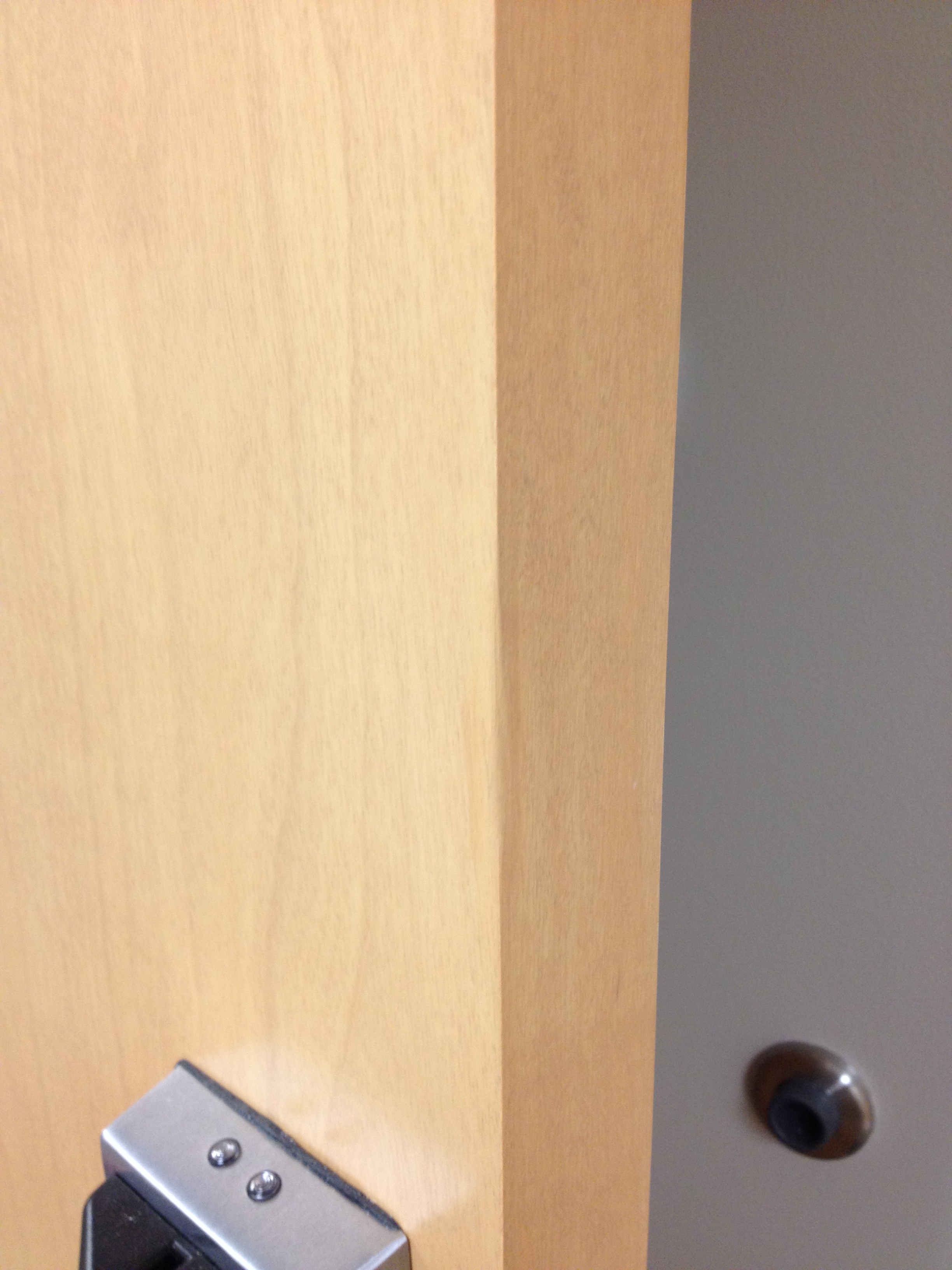 Mark Ryan of Furniture Medic recently was hired to oversee a large door veneer repair project. A large volume of doors were delivered to a new facility and installed that unfortunately turned out to have defects likely caused by shipping conditions and installation.