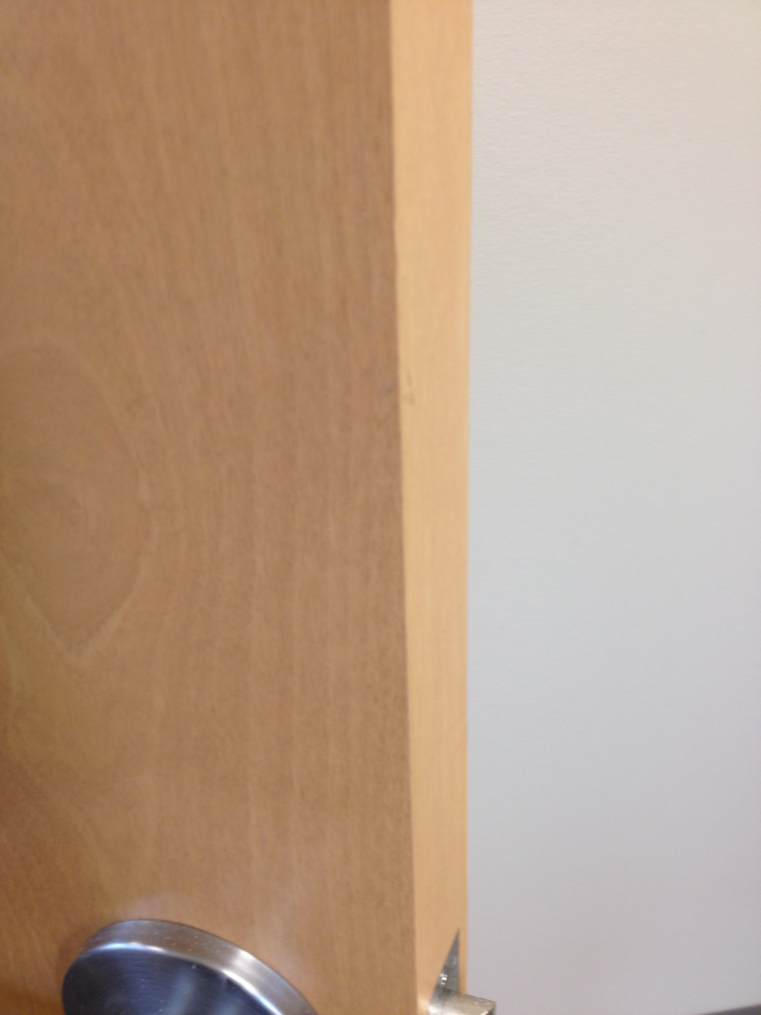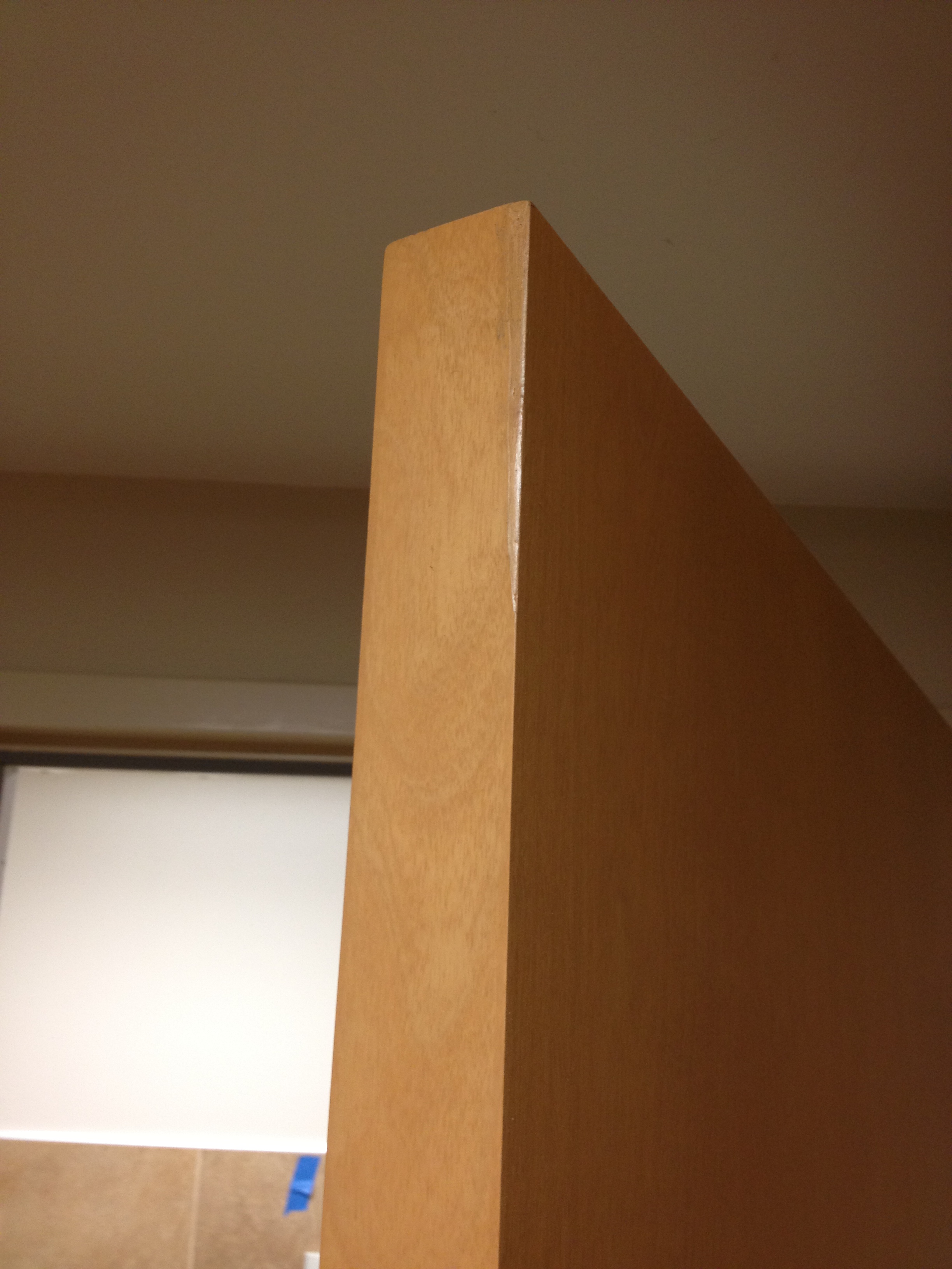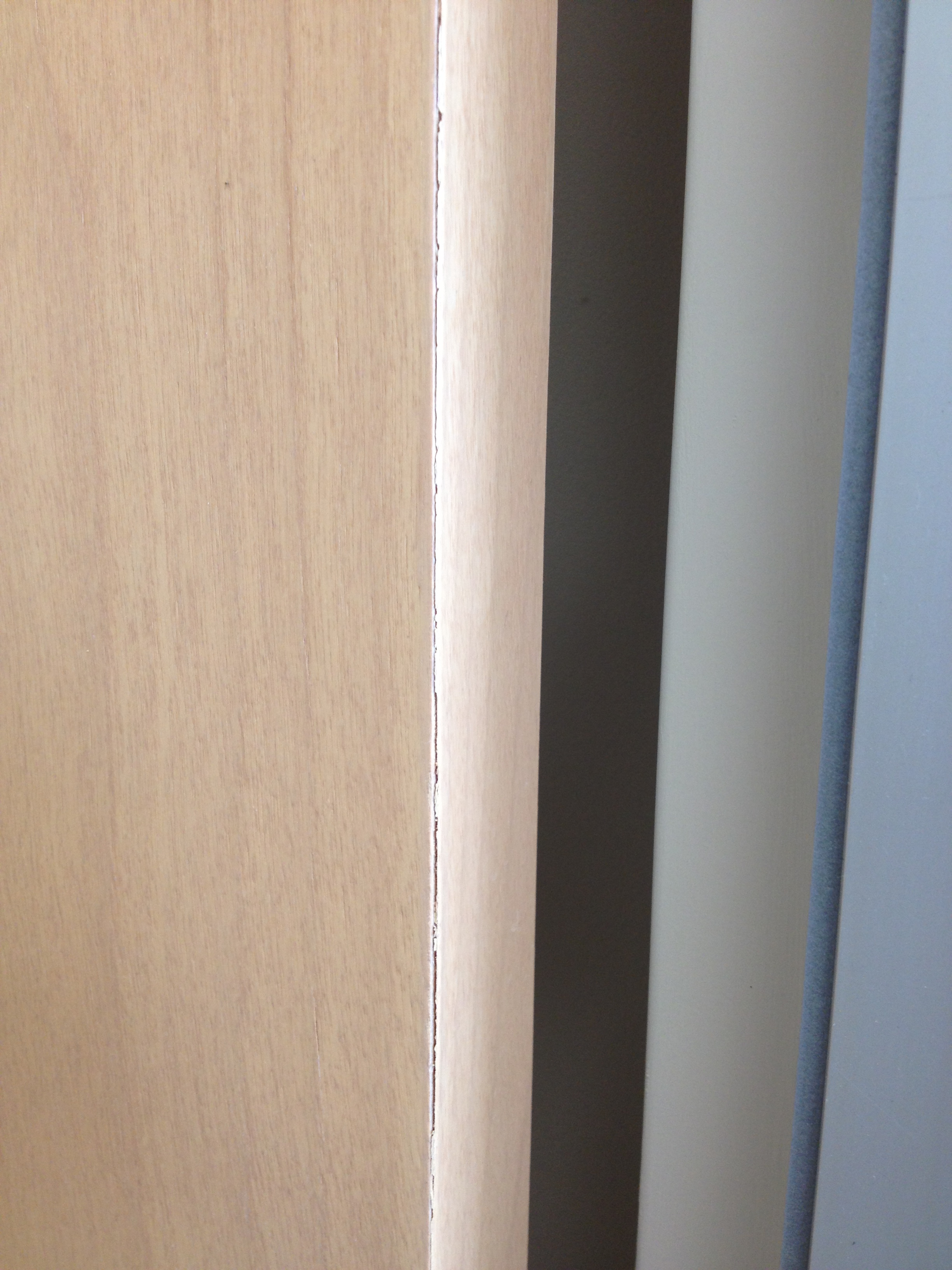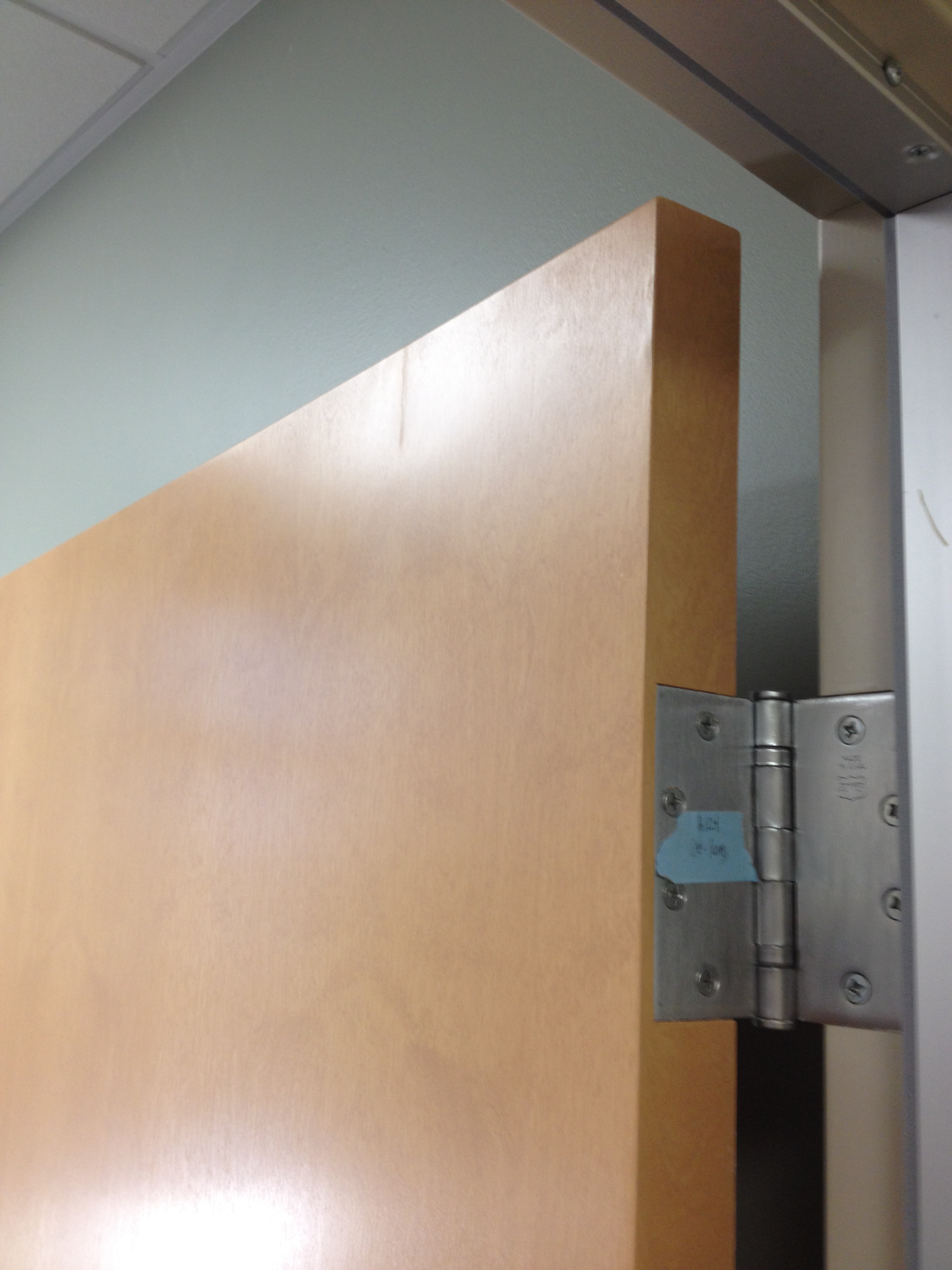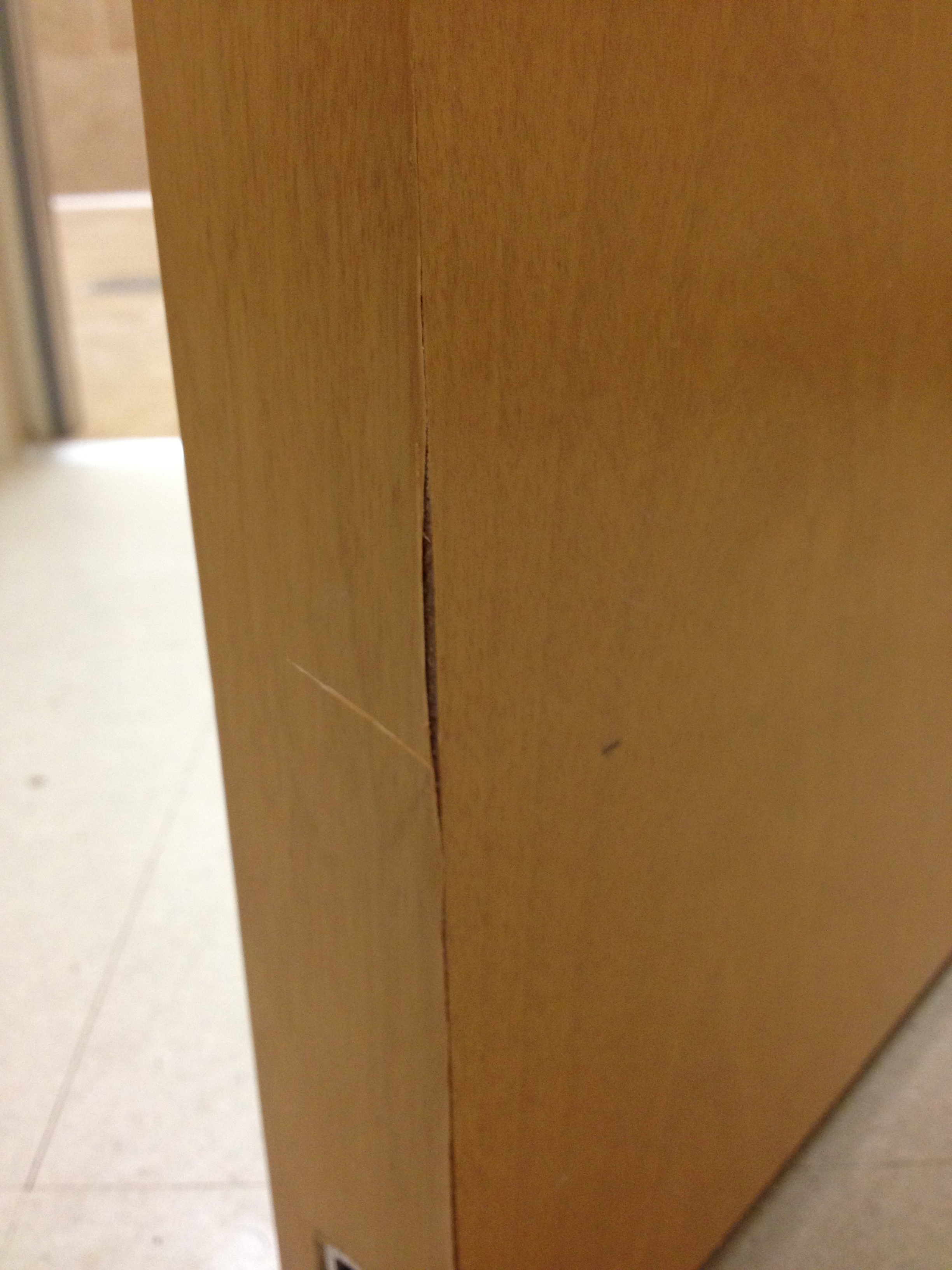 Mark Ryan of Furniture Medic recently was hired to oversee a large door veneer repair project. A large volume of doors were delivered to a new facility and installed that unfortunately turned out to have defects likely caused by shipping conditions and installation.