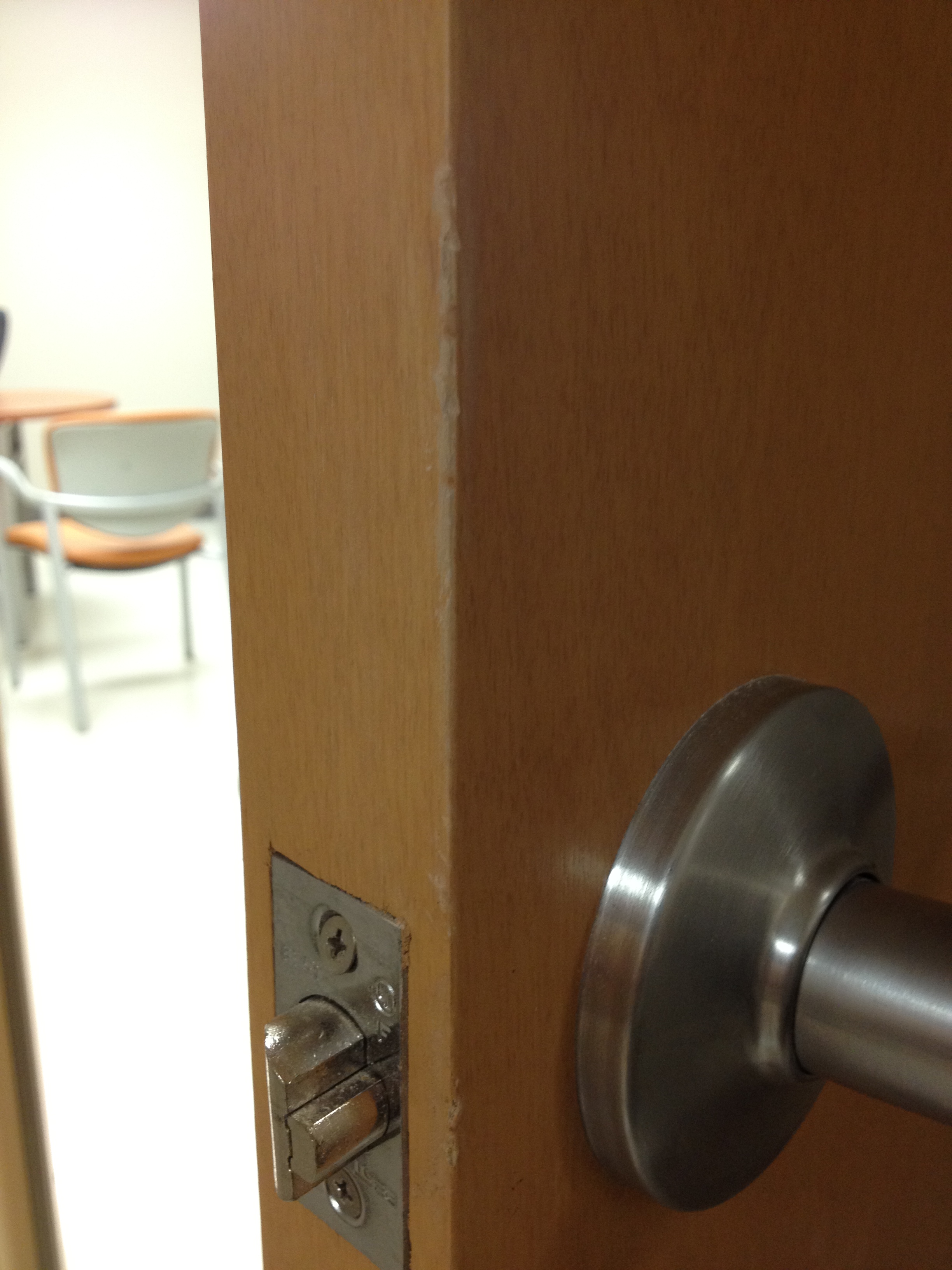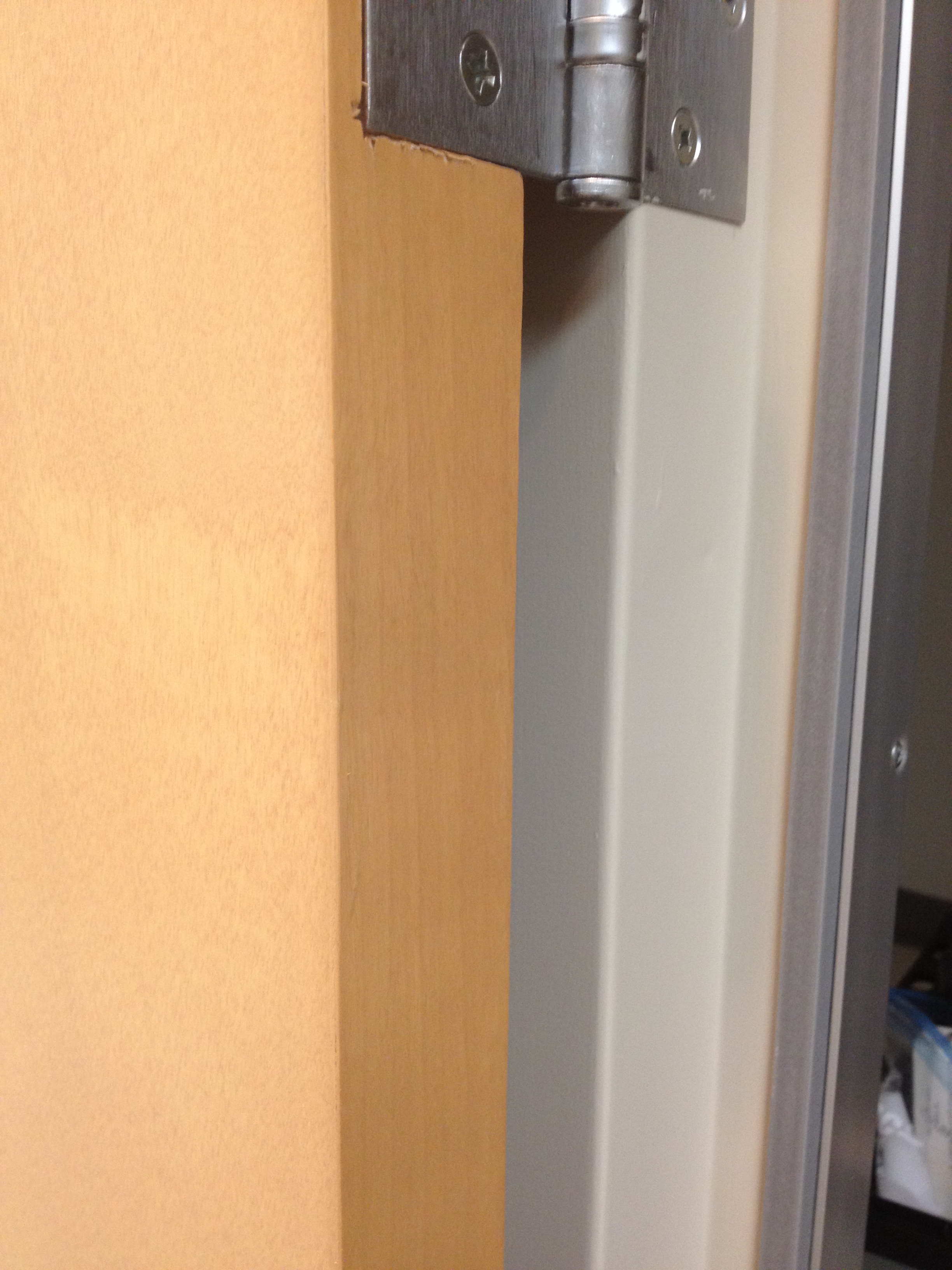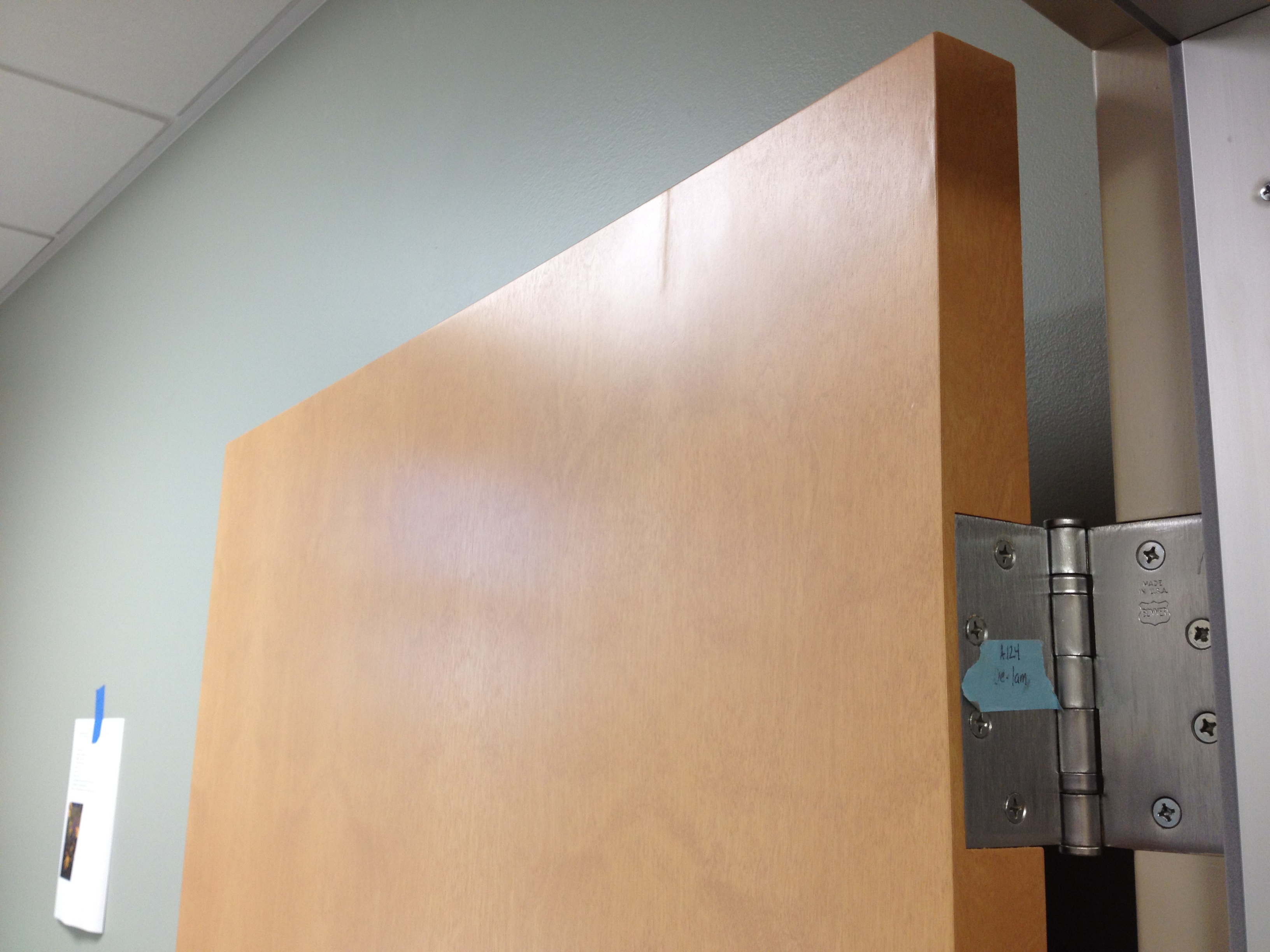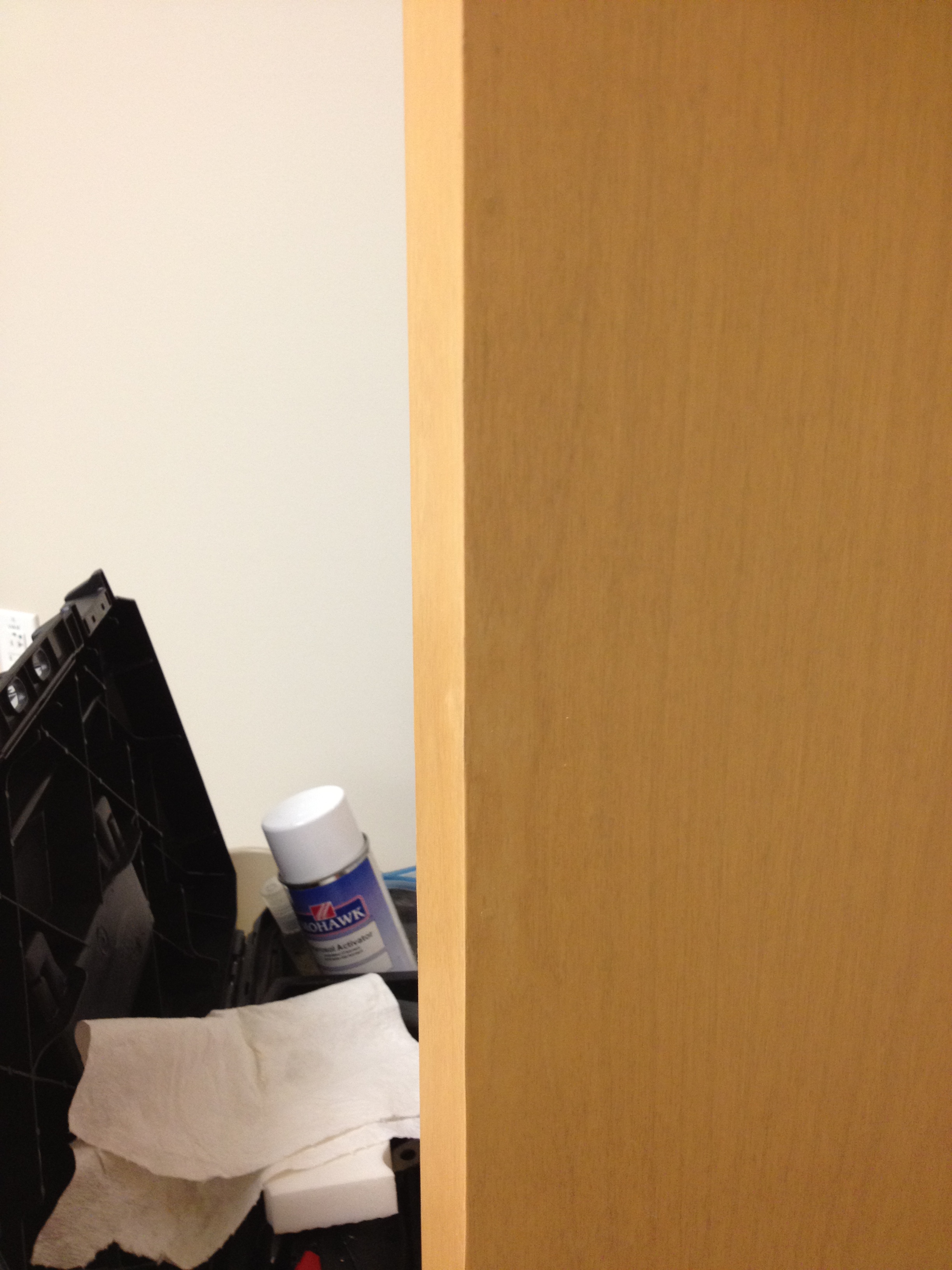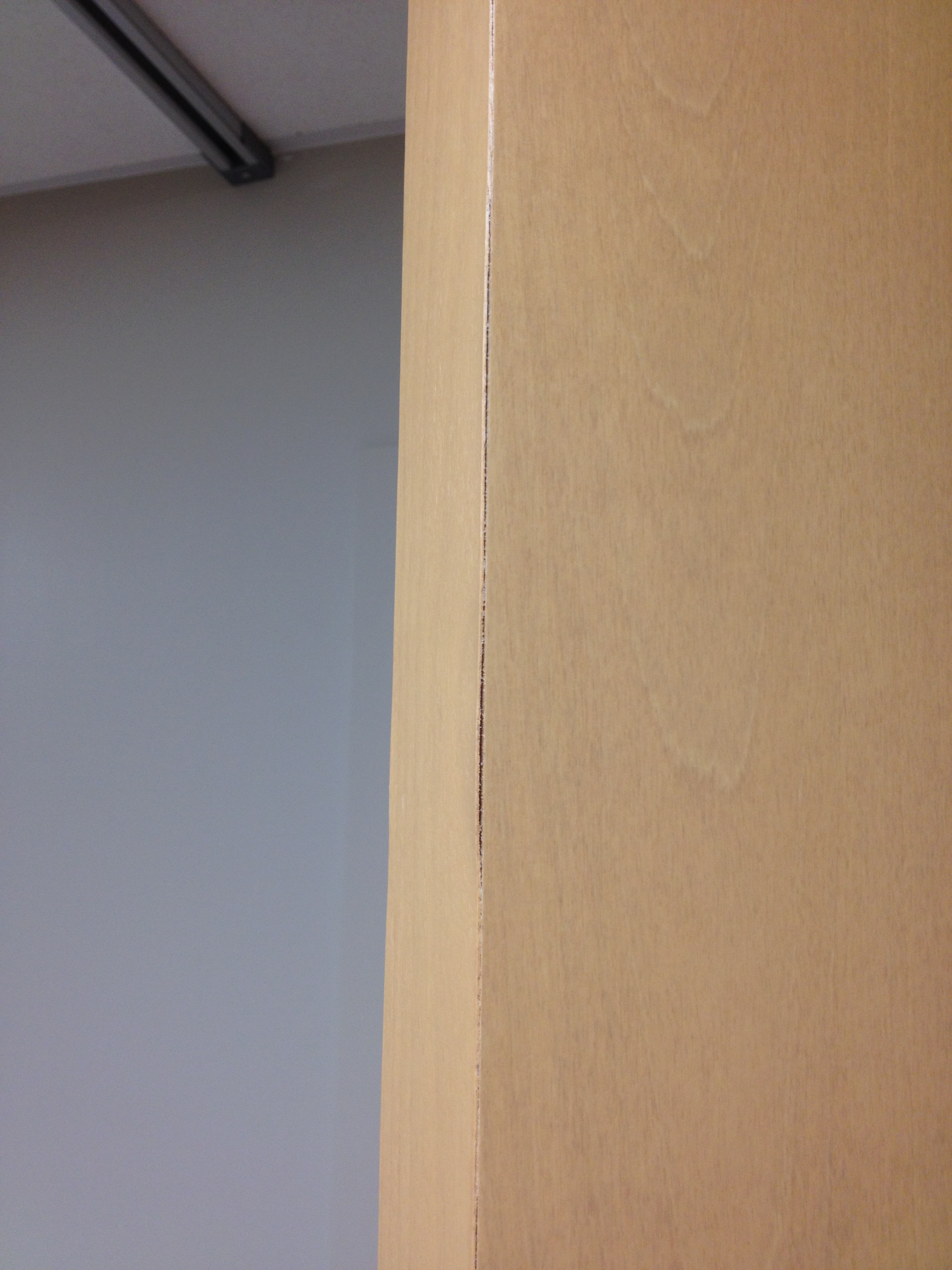 Mark Ryan of Furniture Medic recently was hired to oversee a large door veneer repair project. A large volume of doors were delivered to a new facility and installed that unfortunately turned out to have defects likely caused by shipping conditions and installation.