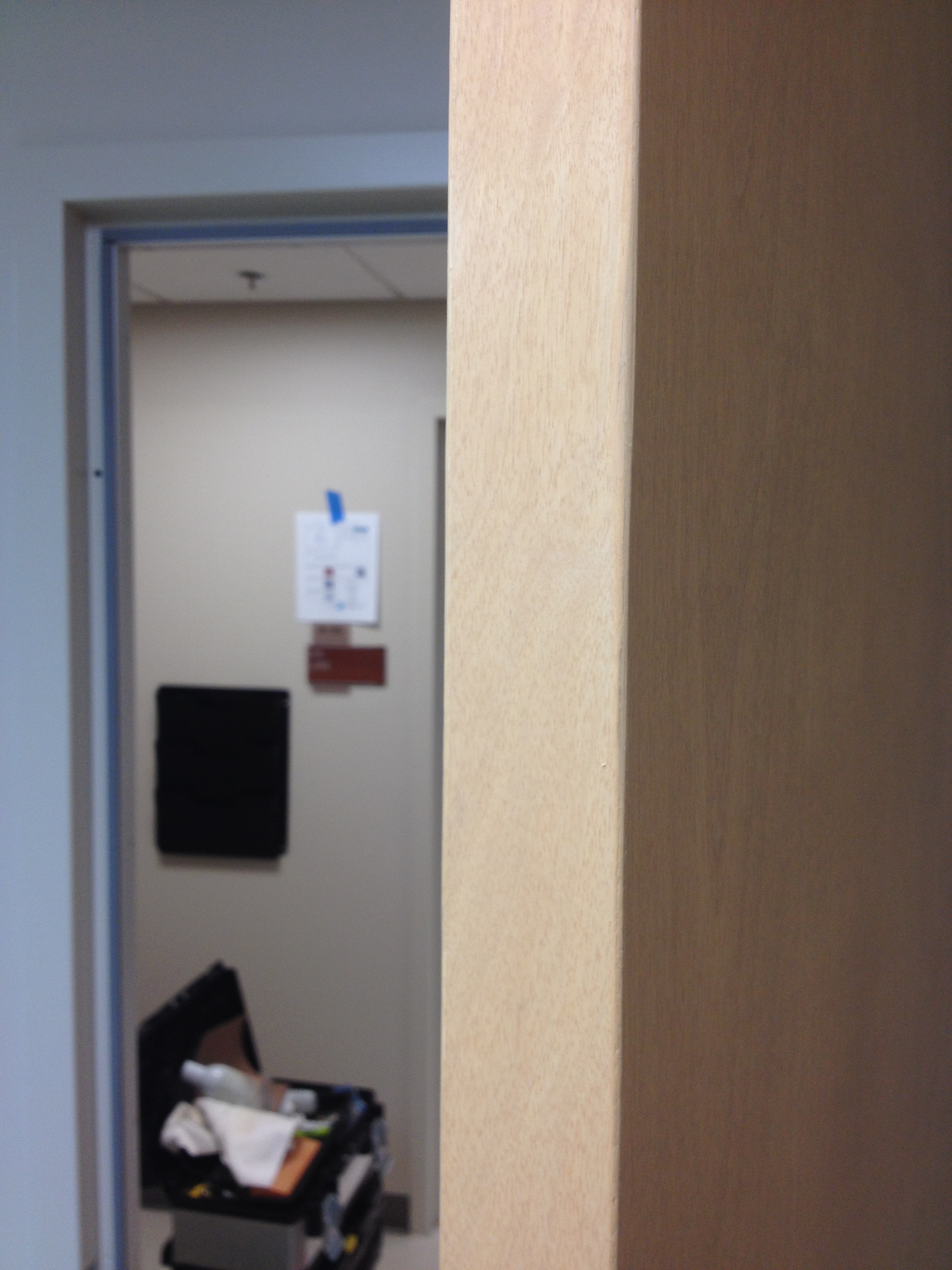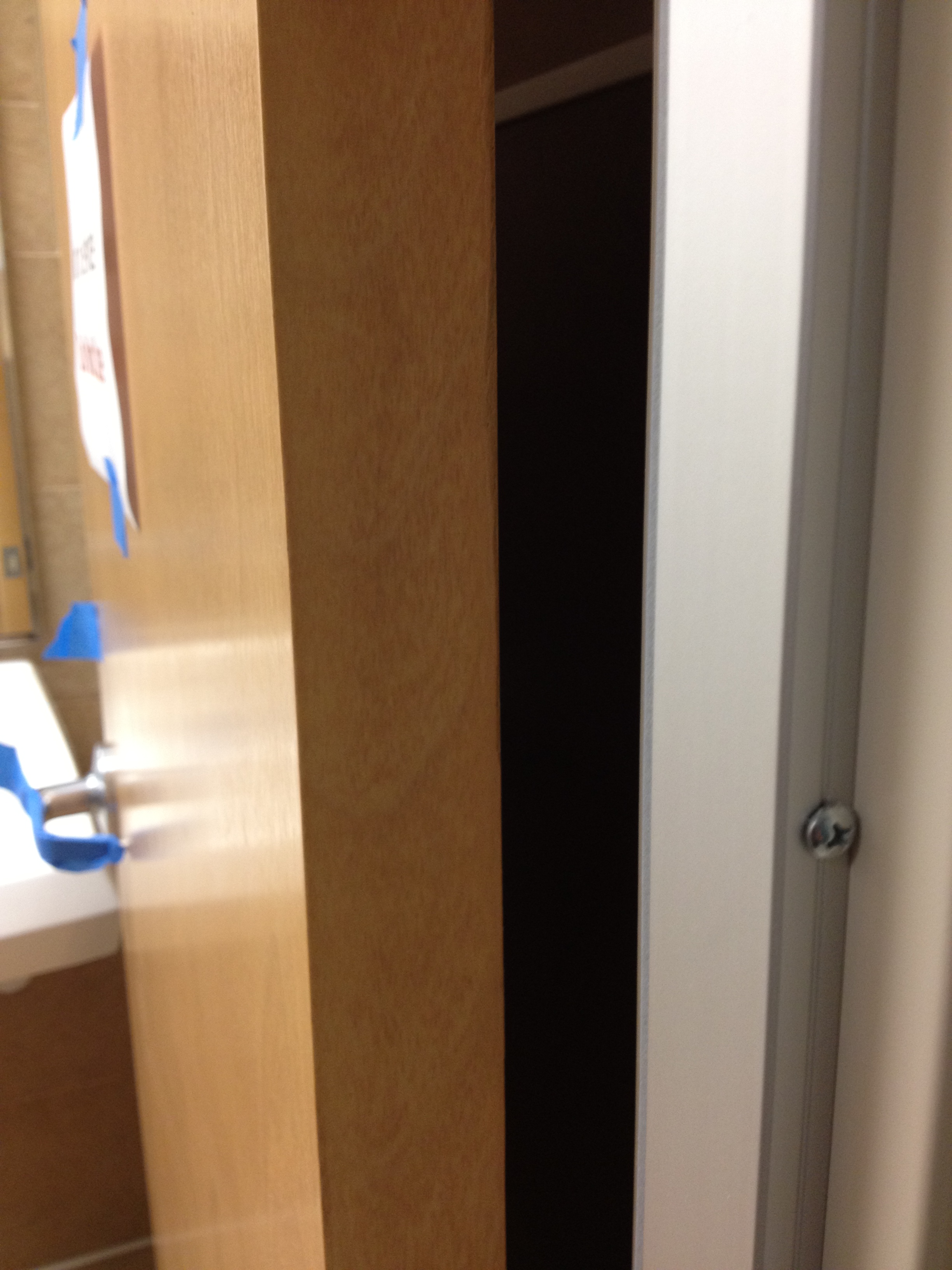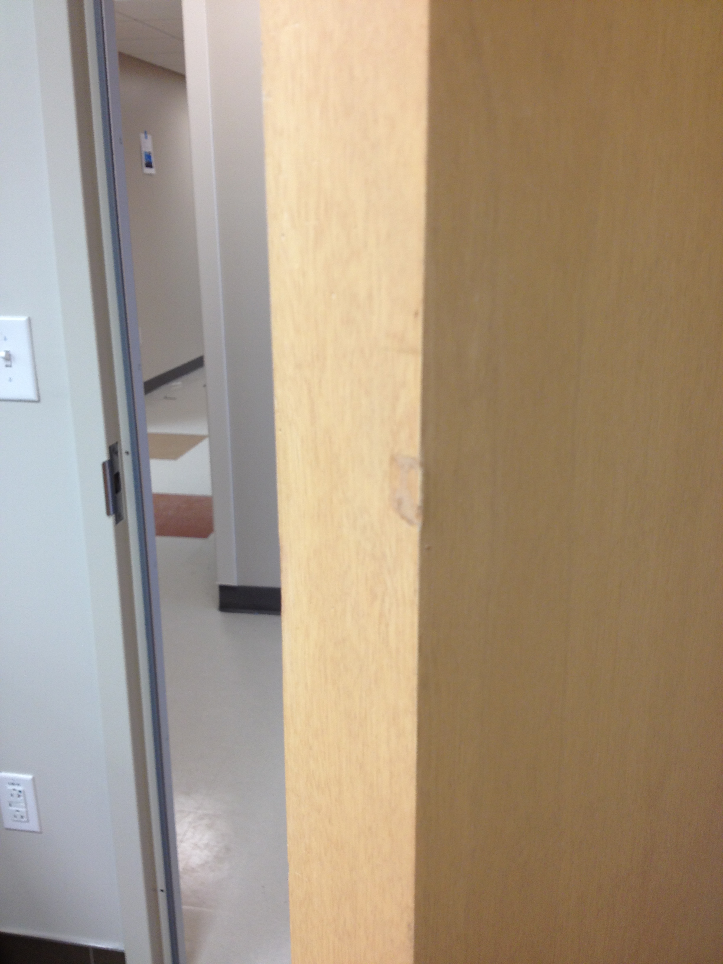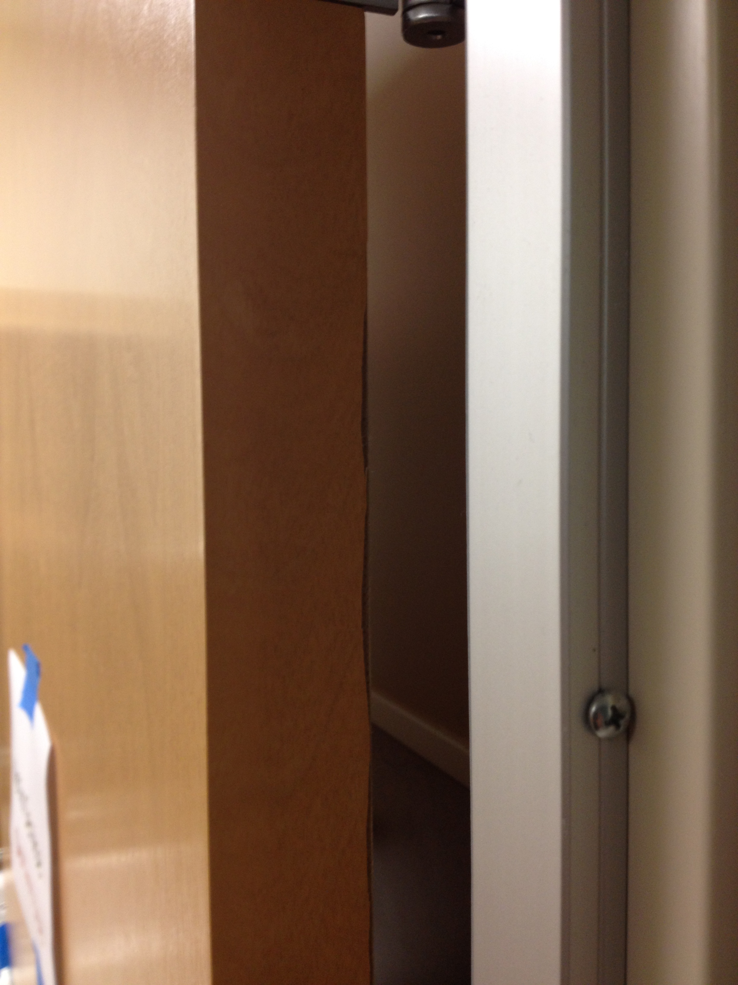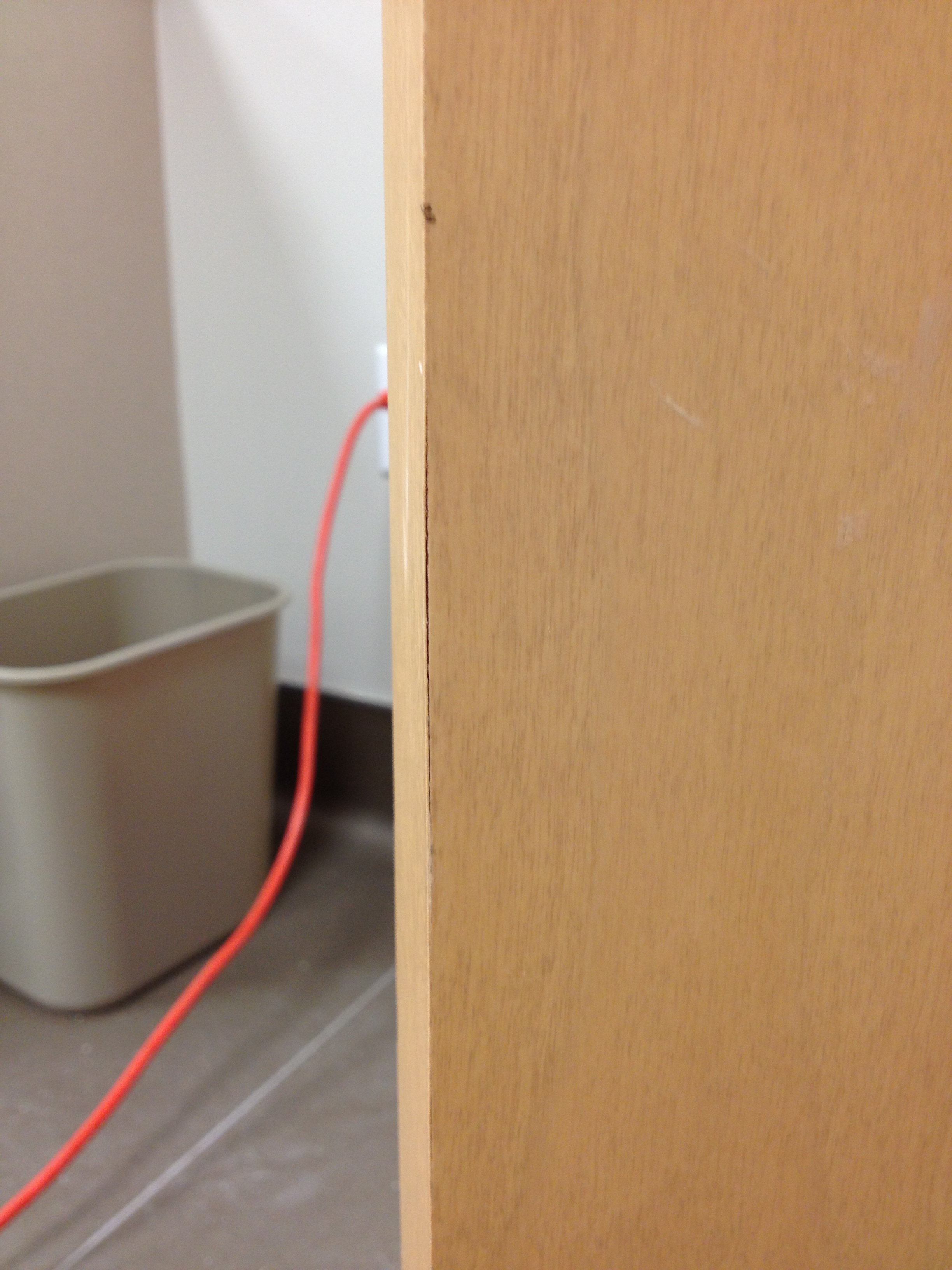 Mark Ryan of Furniture Medic recently was hired to oversee a large door veneer repair project. A large volume of doors were delivered to a new facility and installed that unfortunately turned out to have defects likely caused by shipping conditions and installation.