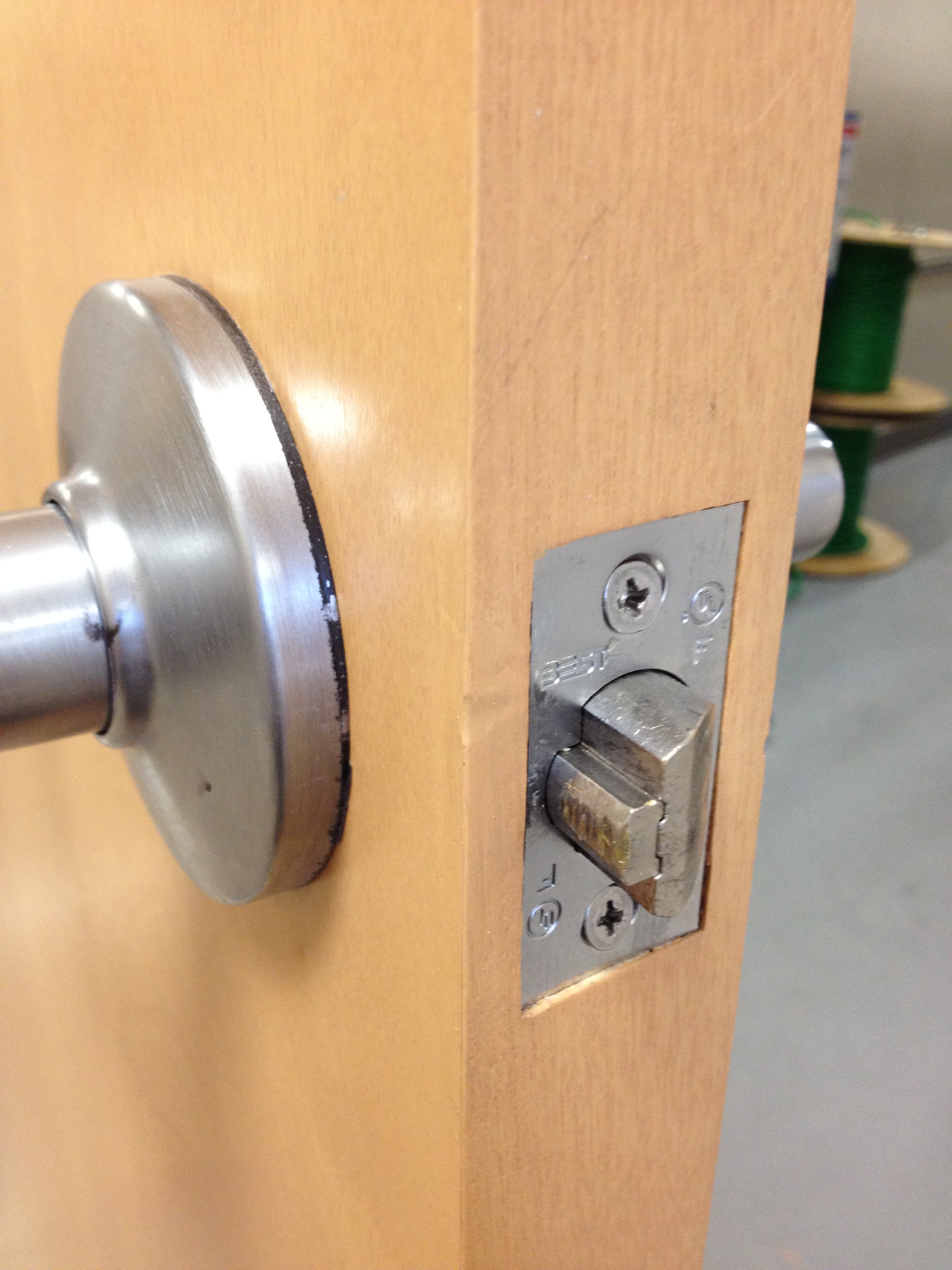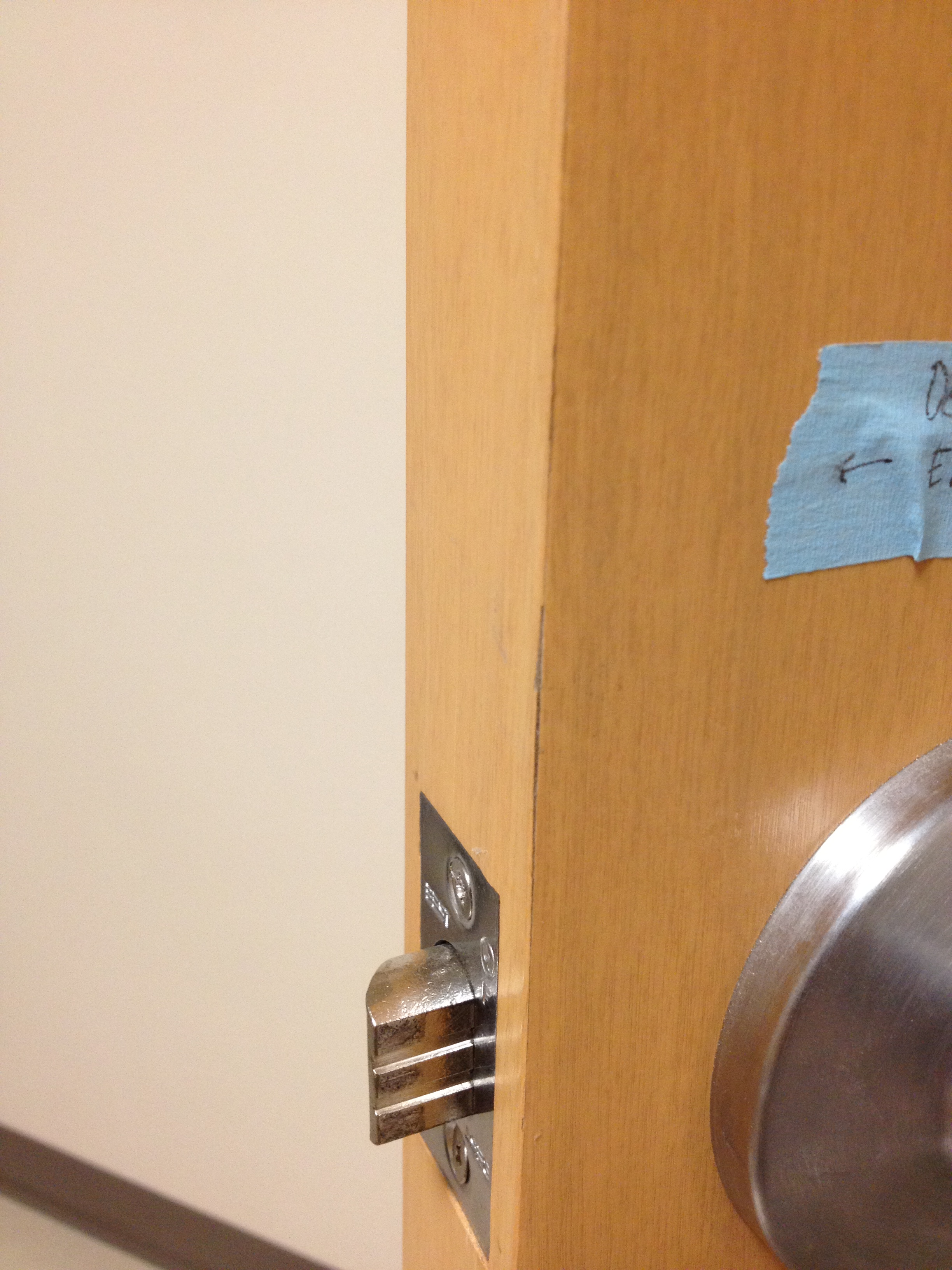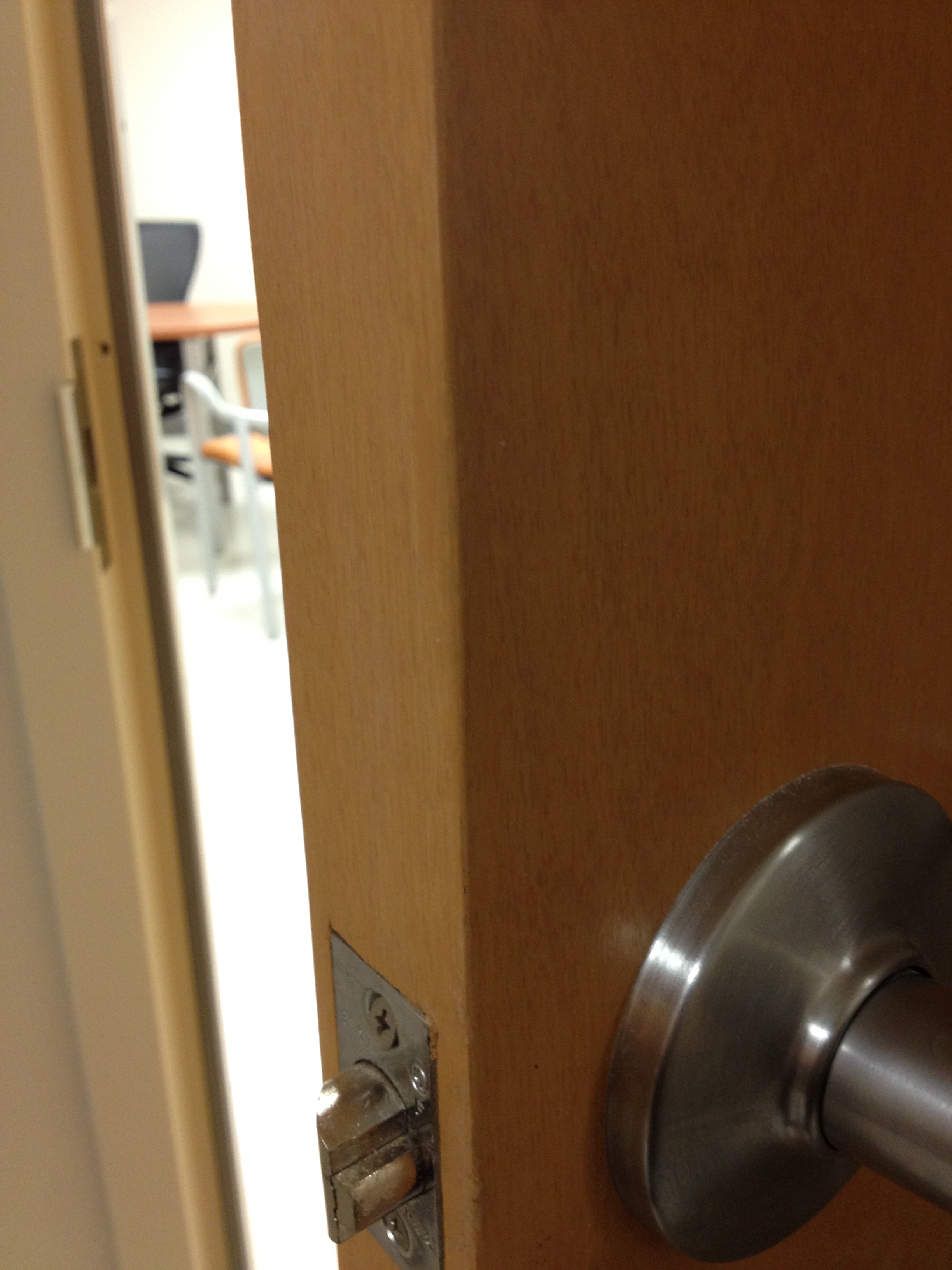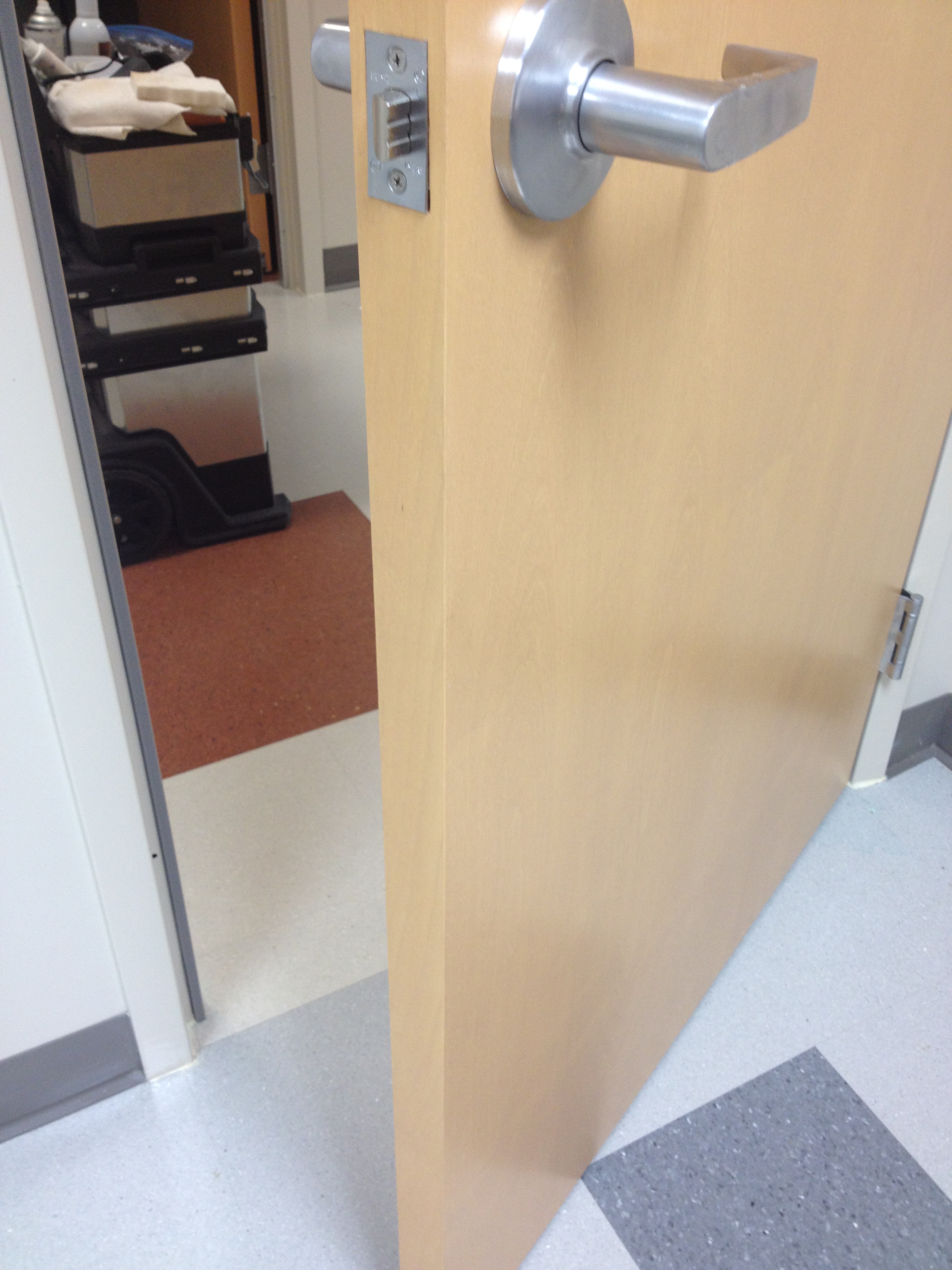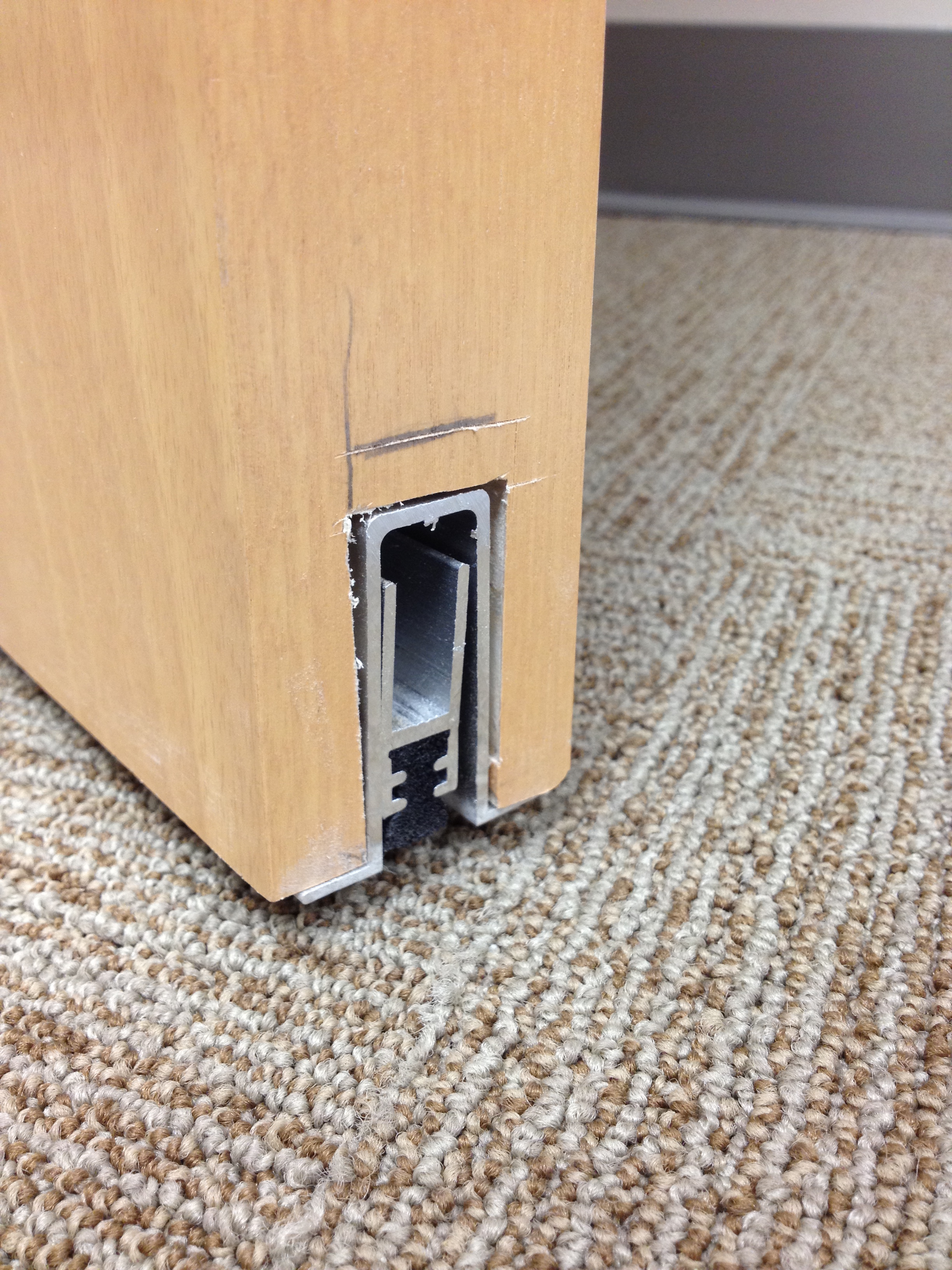 Mark Ryan of Furniture Medic recently was hired to oversee a large door veneer repair project. A large volume of doors were delivered to a new facility and installed that unfortunately turned out to have defects likely caused by shipping conditions and installation.
