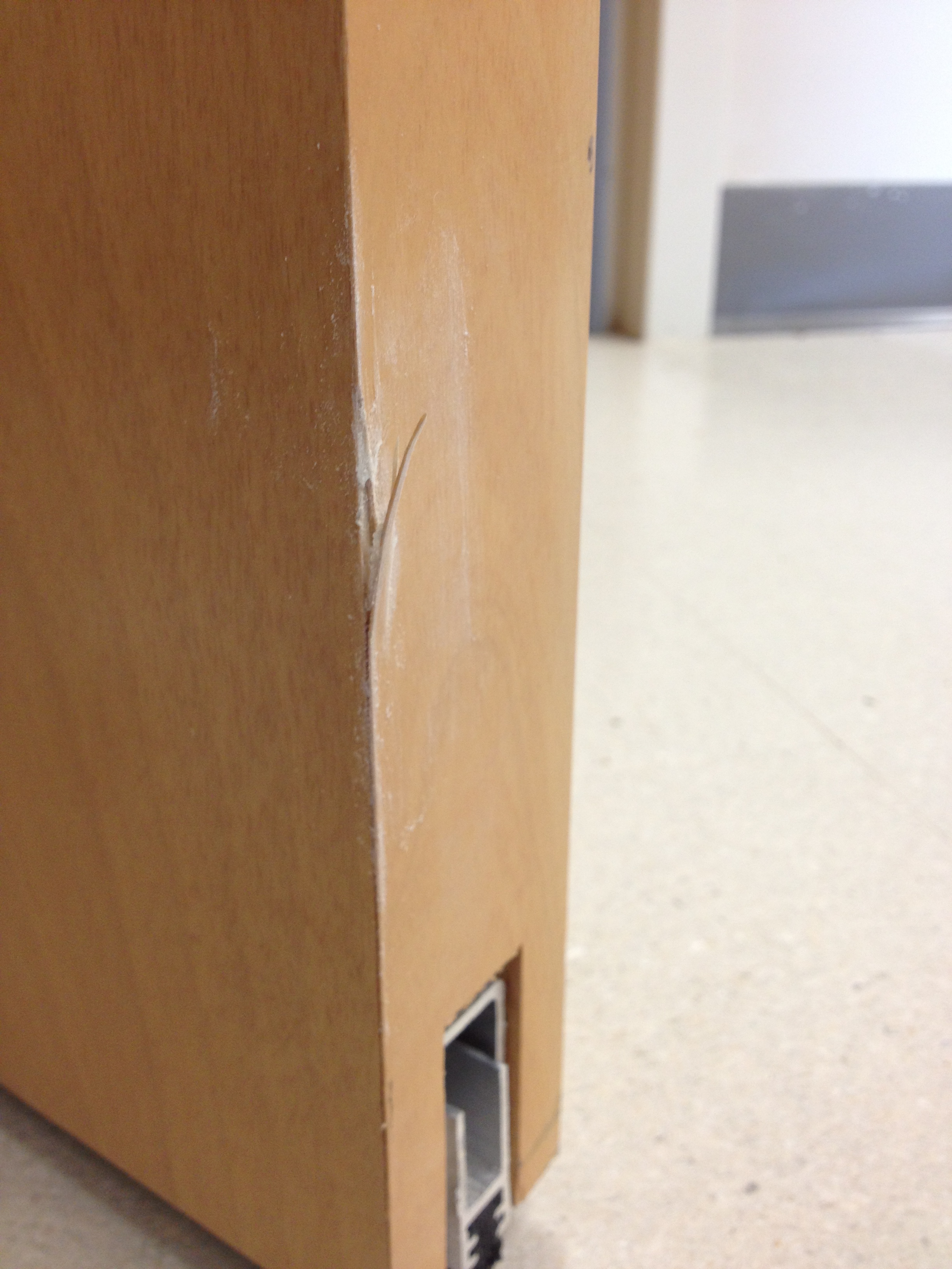 Over the course of 3 days Mark repaired over 50 doors! Some of the doors and peeling veneer that had to be fixed and in some cases replaced. Other doors were dented and/or scratched and required precision repairs. Our customer was very happy with the results.