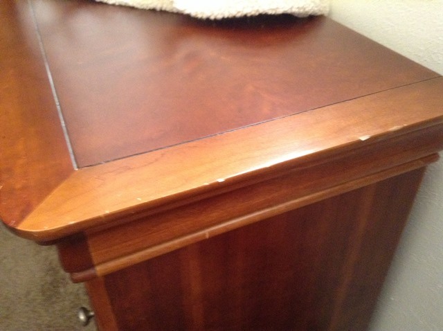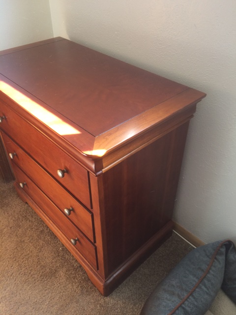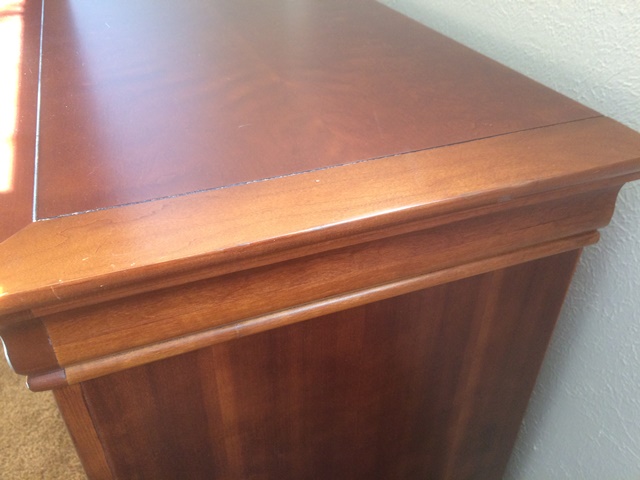 During a recent move a drawer cabinet and bookcase were damaged. The drawer was chipped and dented along the top edge and the bookcase that was handmade by the customer had liquid damage to the top and left side that stained the finish. Using precision repair techniques we were able to repair the drawer and by stripping and refinishing the bookcase we were able to bring it back to the pre-loss condition. Here is what our customers said;