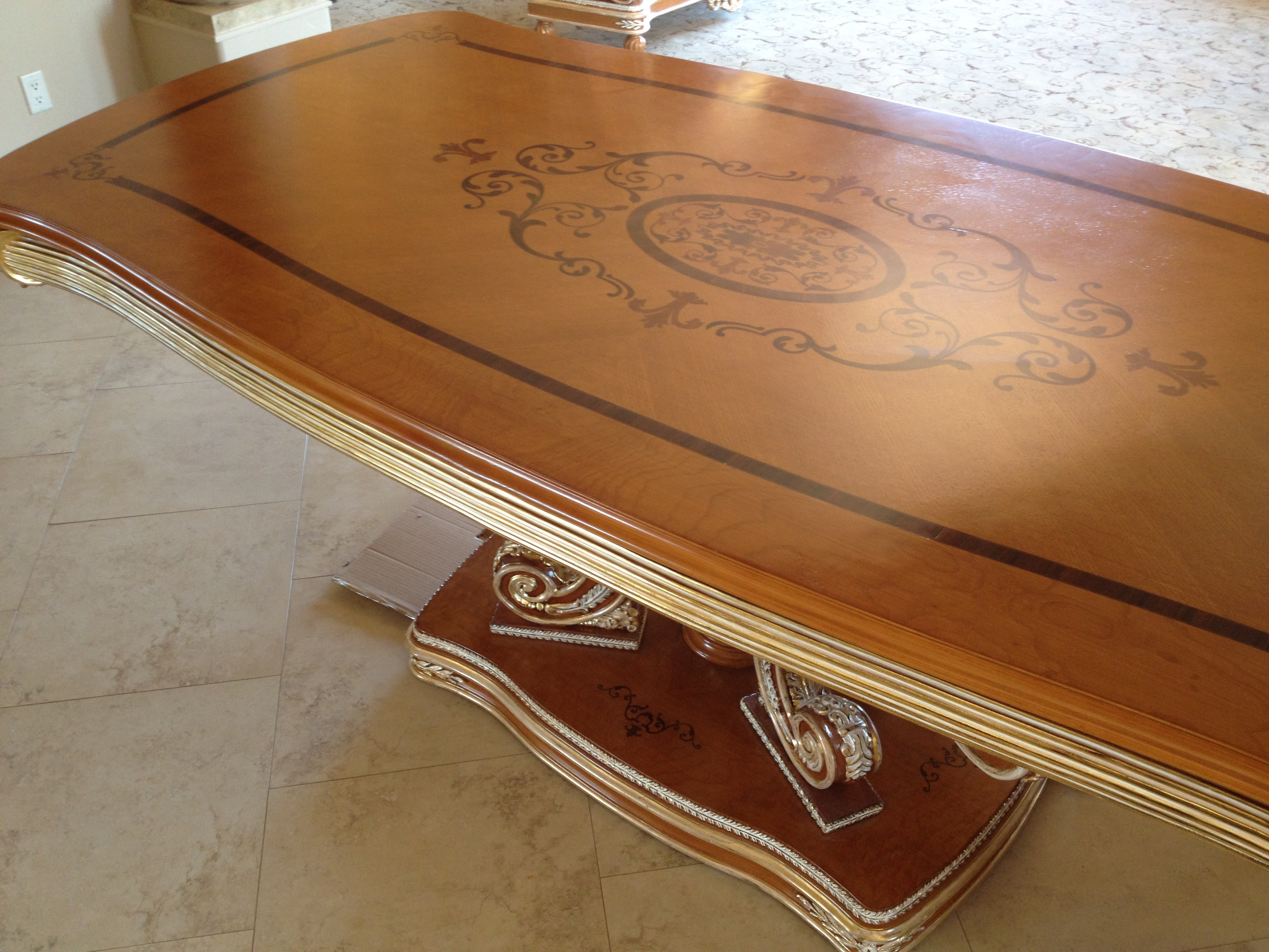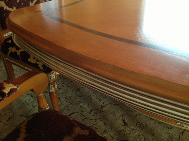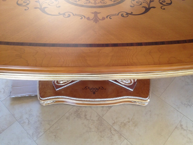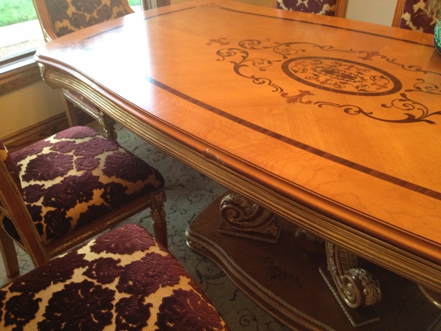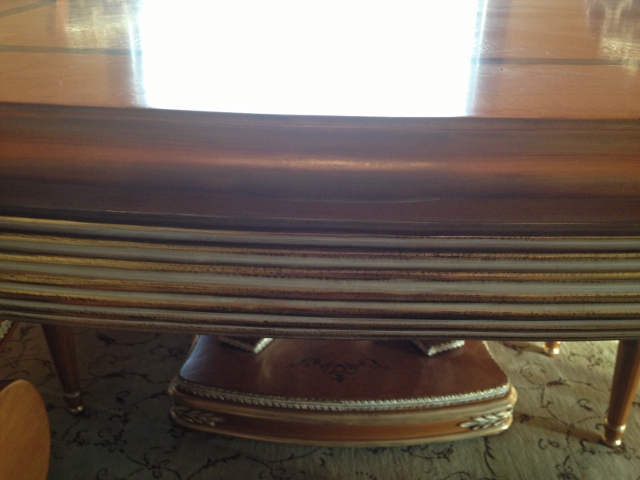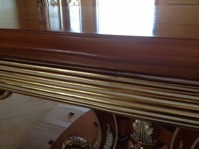 Furniture from other countries can really be spectacular! However, trouble can often arise when the furniture is shipped during the journey to the buyer’s home. Recently Mark of Furniture Medic had the opportunity to restore shipping damage to a high-end very ornate Italian style dining set, on-site in the customer’s home. During the shipping process the table, chairs and matching armoire all suffered some sort of damage.