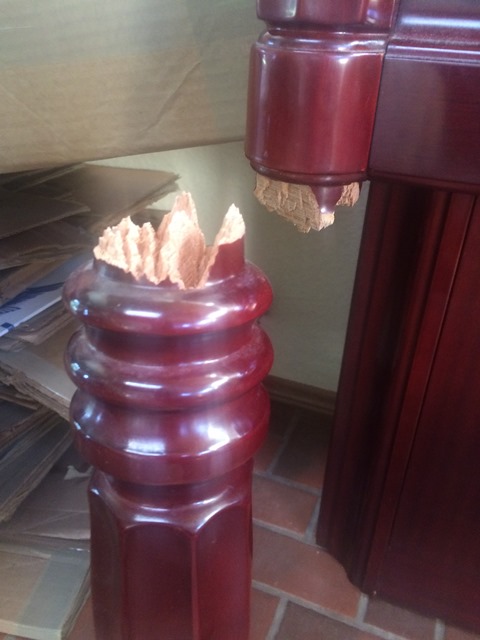 This piano leg was damage during an across country move. The owners were upset to say the least. We were able to quickly repair the leg in their home and using precision repair fill techniques the join line was almost invisible. See our customer review below;