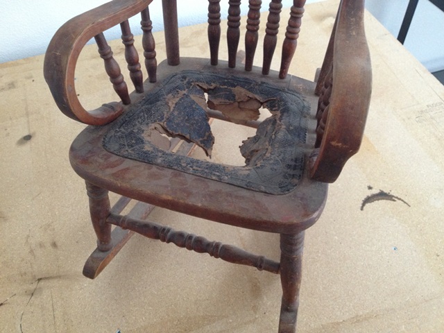 Mark recently had the opportunity to restore the most adorable miniature rocking chair for one of our customer’s in Albuquerque.  It had been used for 2 generations and the family wanted to make it usable for their grandson.  Mark did a complete strip and refinished of the tiny rocking chair and reupholstered the seat.